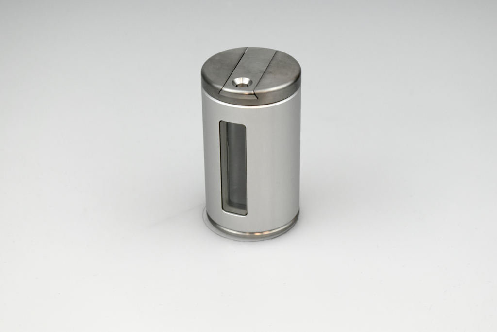 The durable silver anodized aluminum housing is easy to clean, highly resistant to wear, and provides clear visual identification—ideal for environments that use color coding to distinguish between vial types or isotopes. The sliding lid closes magnetically, ensuring the vial remains shielded when not in active use.