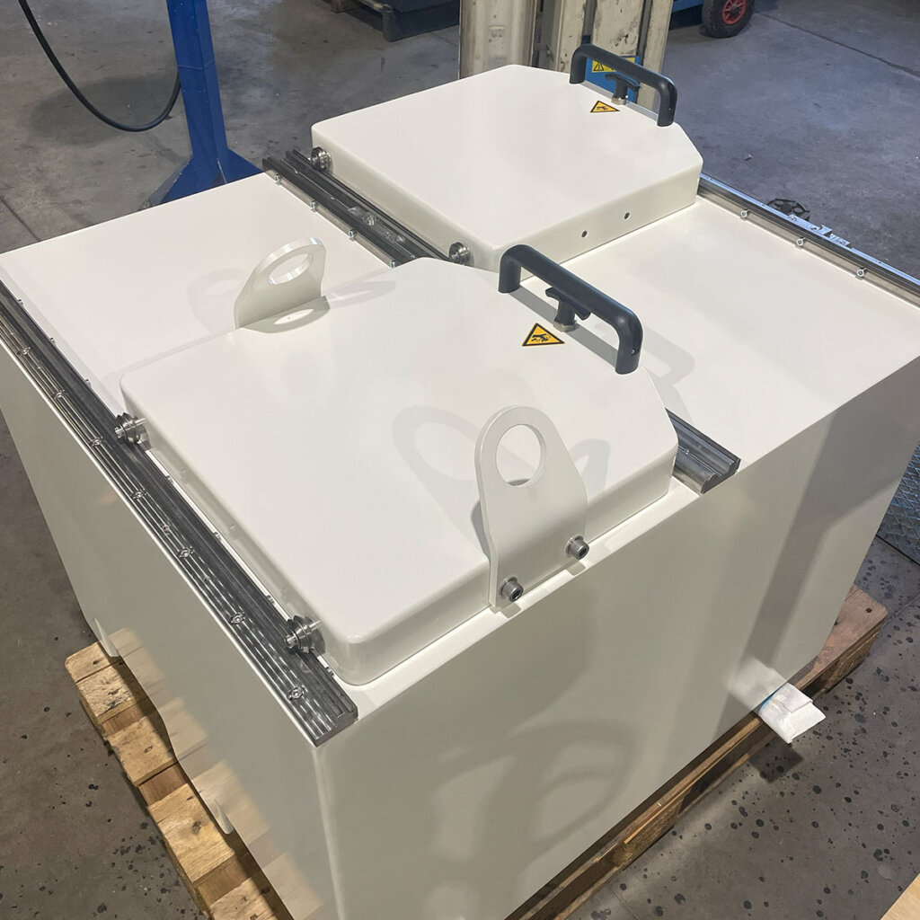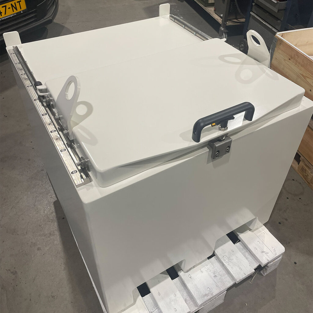 The exterior features the same two-component polyurethane epoxy coating proven across Nuclear Shields’ container range: