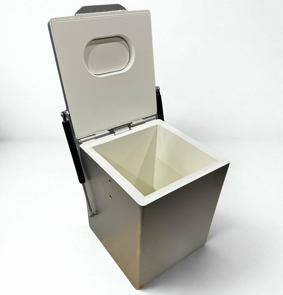 Engineered for use in hospitals, radiopharmacies, and research labs, the SWB125-8L combines safety, durability, and ease of handling. The bin features a convenient 8-liter internal volume with dimensions of 191 x 191 x 250 mm, and weighs 60 kg. Its robust construction ensures long-lasting performance and compliance with radiation safety standards.