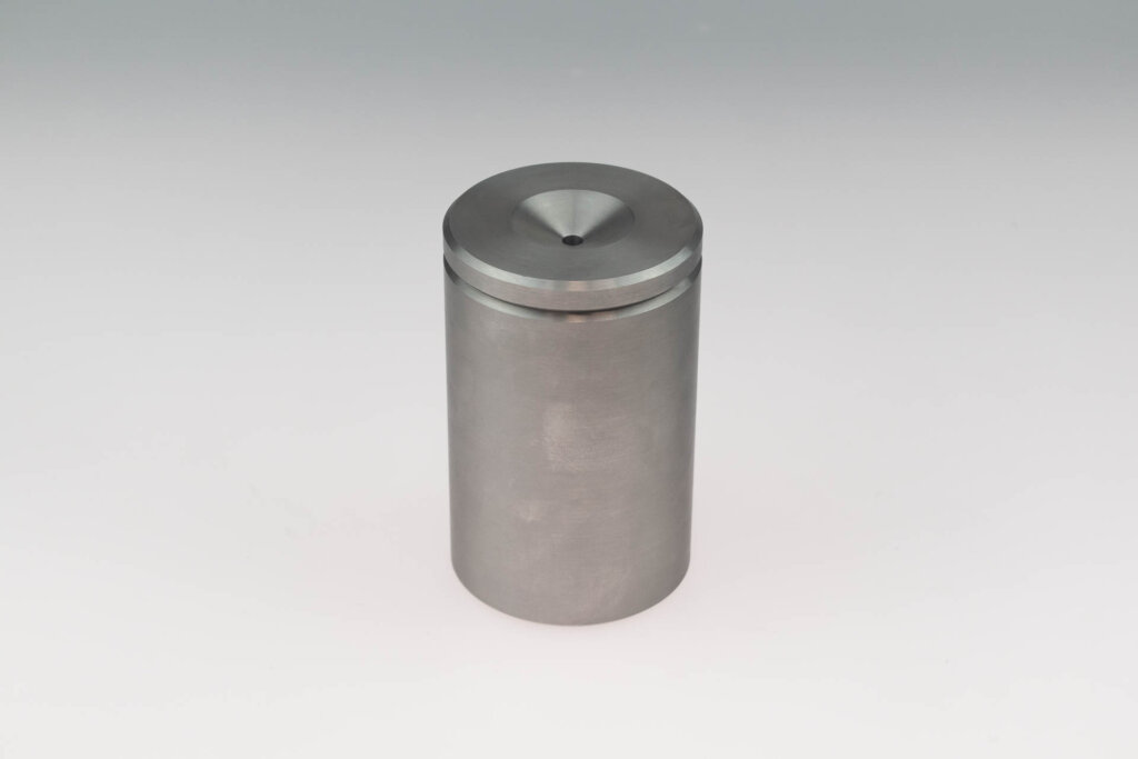 Store your radioactive sources in these tungsten containers with 20 mm tungsten shielding. The top lid has a tapered hole to accomodate dose drawing while minimizing radiation exposure. The hole can be shielded with a tungsten plug. It is optional to receive this plug threaded. If that is not necessary, we recommend not to thread the plug to keep the hole diameter as small as possible.